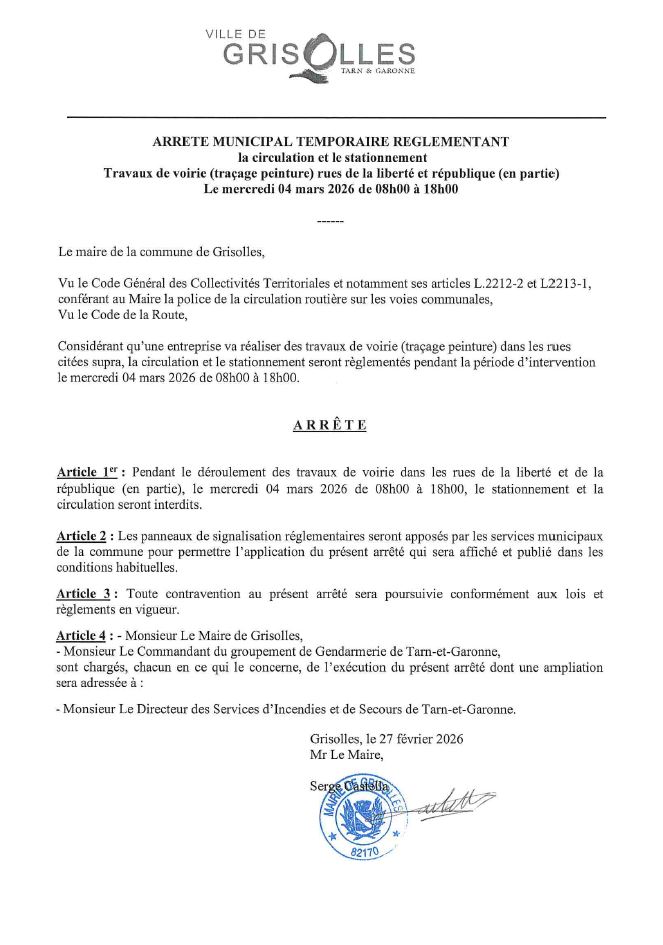 AVIS À LA POPULATION Il est porté à la connaissance des riverains que le stationnement et la circulation seront strictement interdits à compter de 8 h…