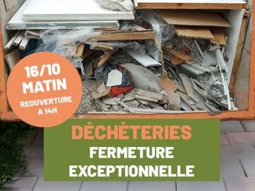 Les déchèteries de Dieupentale, Reyniès et Verdun seront exceptionnellement fermées le jeudi 16 octobre au matin. Elles ouvriront l’après-midi de 14h…