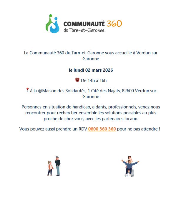 Permanence de la Communauté 360 - lundi 02 mars de 14h à 16h : Maison des Solidarités 1 Cité des Najats 82600 VERDUN-SUR-GARONNE. Ce dispositif a pour…