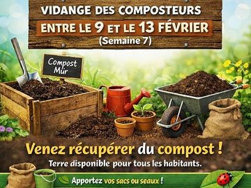 Les administrés sont informés que le compost issu des composteurs communaux est arrivé à maturité. Ils seront vidés par les services techniques dans…